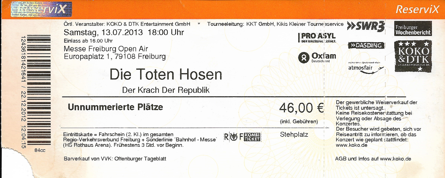 Neben den Konzert auf dem Rollfeld des Tempelhofer Flughafens in Berlin war das Messe Open Air in Freiburg das größte Konzert der KrachDerRepublik Tour 2012/2013!